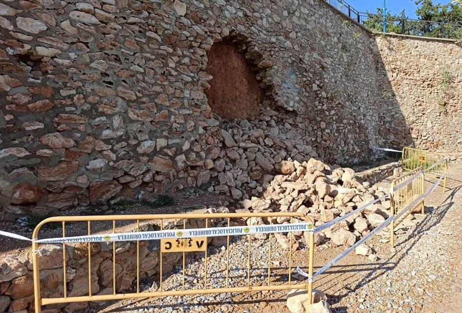 Deler av mur falt ned ved strand
